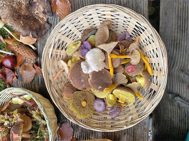 Ein wunderbar gestalteter Tisch mit diversen zuvor im Wald gesammelten Pilzen war dafür bereits eingerichtet worden und diente als konkretes Vorzeige- und Anschauungsbeispiel.